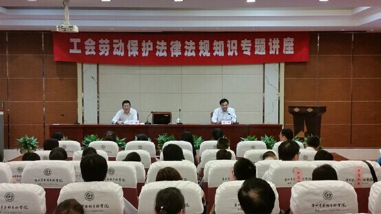 為進一步推進工會勞動保護、促進企業安全生產,維護職工安全健康權益,9月19日,市總工會成功舉辦了第4期工會大講堂暨工會勞動保護法律法規知識專題講座,邀請省總工會勞動保護咨詢專家組成員方健主講《工會勞動保護法律法規》。講座由市總工會黨組書記、副主席沈華主持。市總工會主席溫祥華,副主席朱正榮,市總黨組中心組成員和機關干部以及各市、區、局(公司)工會干部,鎮(街道)、市區基層工會干部代表150多人參加了聽講,整個報告廳里濟濟一堂,座無虛席。